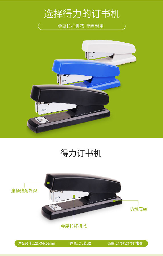得力(deli)20頁經(jīng)典耐用訂書機/訂書器(適用12#釘) 黑色0425